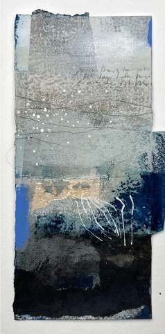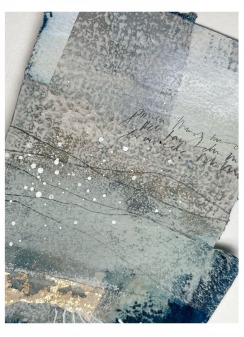 Collagepapiere unterschiedlichster Textur werden zu rhythmischen Untergründen zusammengefügt und weiterbearbeitet mit leuchtender Farbe, milden Schichten, Erden und, wenn gewünscht, auch Gold (Goldfarbe und/oder Blattgold) - Die Verwandlung von vielem Einzelnen zu einem geheimnisvollen Klang.