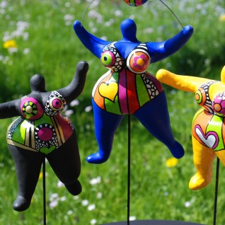 Künstlerin Niki de Saint Phalle geschaffen hat. Mit ihrer schmalen Taille, den ausladenden Hüften, dem grossen Busen und der bunten Bemalung sind sie Sinnbild für weibliche Fülle und Lebendigkeit. |