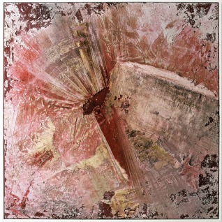 Hier wird expressiv mit Materialebenen aus Strukturelementen und farbigen Sanden gearbeitet