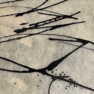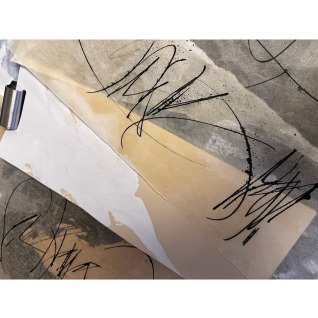 Ob auf Leinwand oder Aquarellkarton mit Collagen, bei denen die unteren Schichten sichtbar bleiben und mit den oberen in Verbindung kommen, oder als Künstlerbücher, in denen die vorhergehende und nachfolgenden Seiten immer auch Teil der gerade aufgeschlagenen Seite sind.