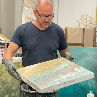 - Sie können auch gern Sand z.B. von Ihren Reisen mitbringen, den Sie in Ihren Bildern verarbeiten können. Im Atelier hat es auch noch weiteres Strukturmaterial wie Erde und Sand.