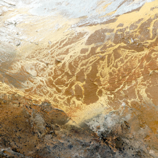 Um diesen Weg zu beschreiten, arbeiten wir mit Pigmenten, Acrylbinder, Wasser, Sand und selbst hergestellten Spachtelmassen, welche die Farben in gewünschte Bahnen leiten.