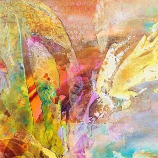 Sehr feine, reliefartige Strukturen aber auch zarte, texturierende Monotypien, Linien und Schriften bereichern diese spezielle Technik. Der gelenkte Zufall führt zu