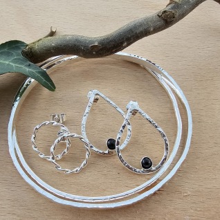 Mittels den Grundtechniken des Goldschmiedens stellen wir aus verschieden Silberdrähten mehrere feine Ringe (Stackringe), Ohr- oder Halsschmuck oder einen feinen Armreif her.